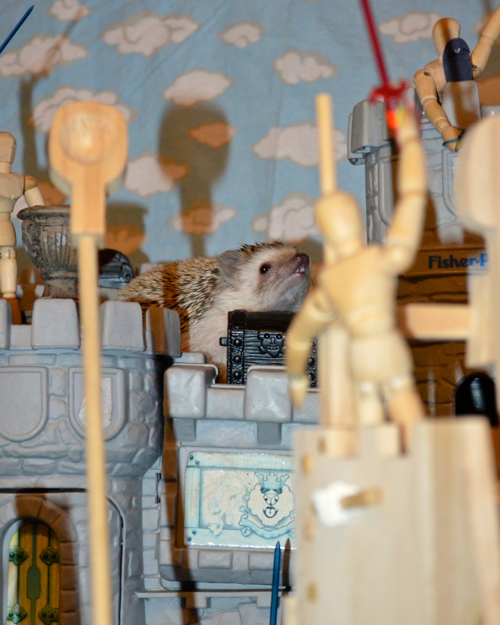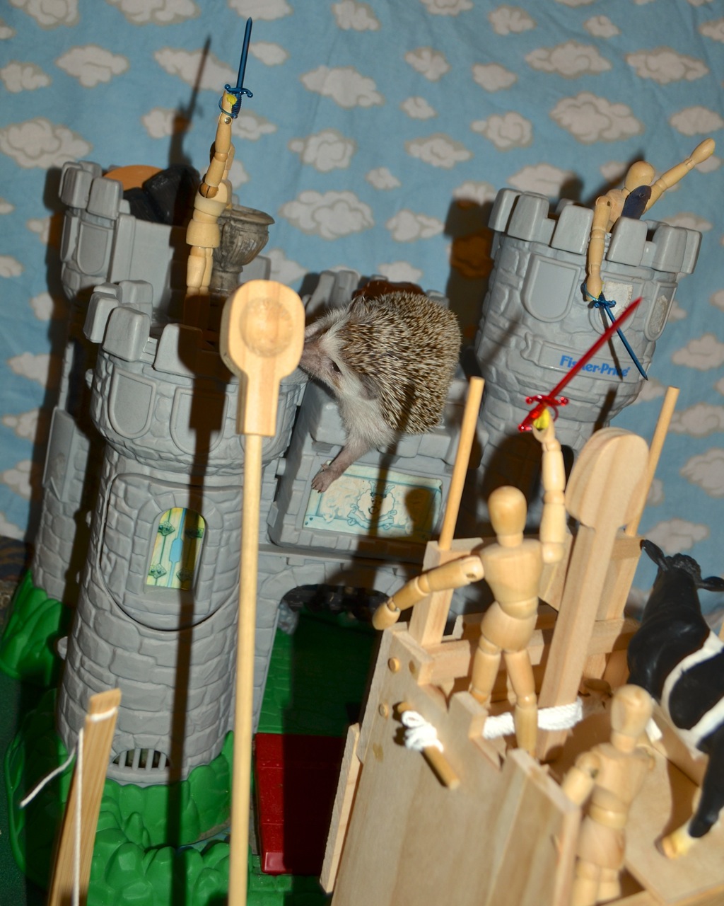 A cat approached, and delivered a sinister monologue. “Greetings, Princess Pricklepants. I am Mittens, a humble farm-cat (with an Electrical Engineering degree from MIT – go Beavers!), and I have taken over this farm! You now are a former-hedgehog farmer, as I now control the farm! A-ha-ha-ha-ha! Using my advanced programming skills, I reprogrammed the robots to serve me to do my wily feline bidding. A previous advice column of yours had advised flinging cats via catapults, and now I have my revenge! Also, I banished your cows, forced the crocodiles to serve as slaves in the moat, and your literary bear friend is stuck in a paddock with no books to read! Bwa ha ha!” It was strange to hear a cat laugh. Regardless, the cat continued on for a while explaining how it accessed the reprogramming interface port of the robots, and some other details, but you don’t need to hear all of it. It was a very long monologue.