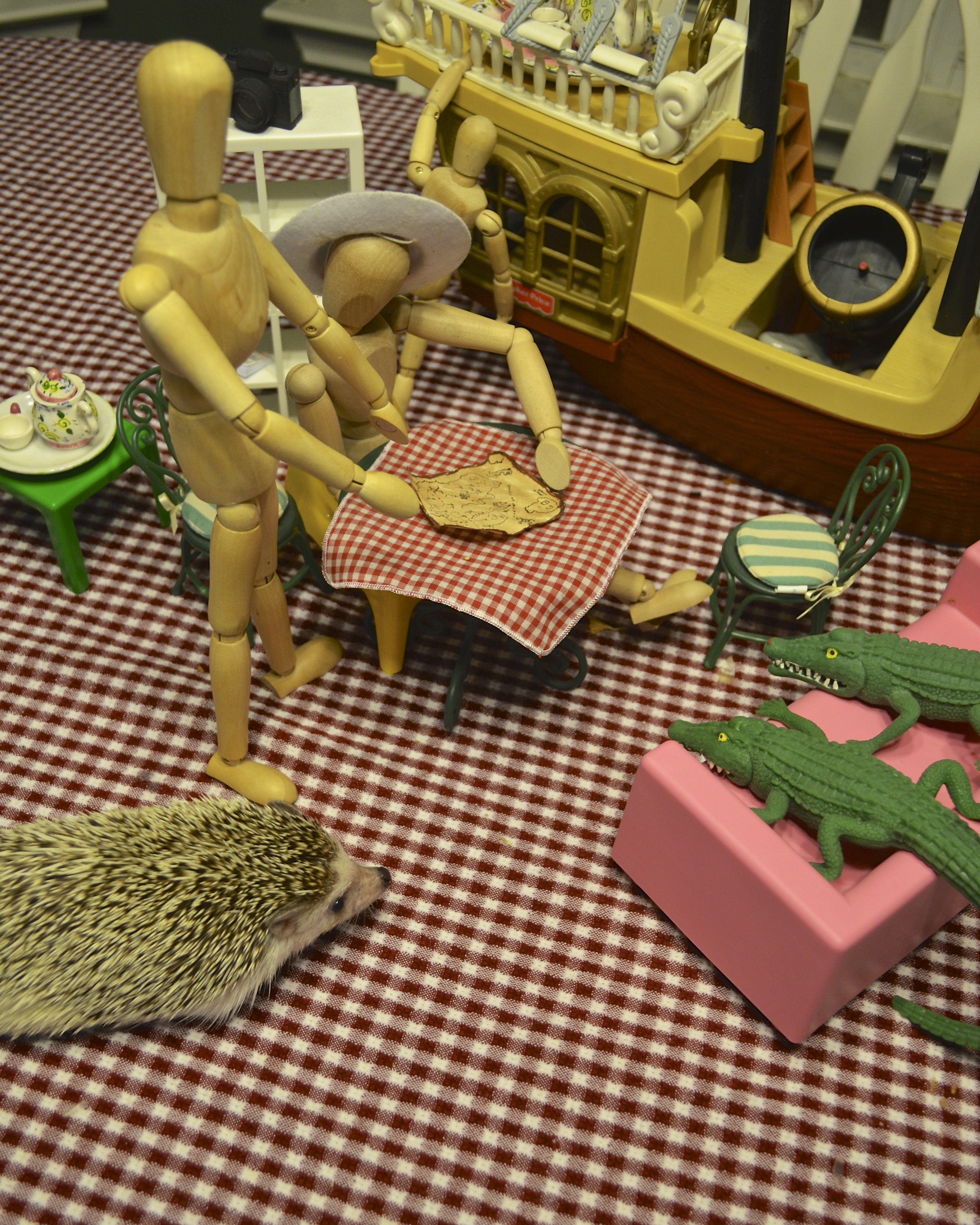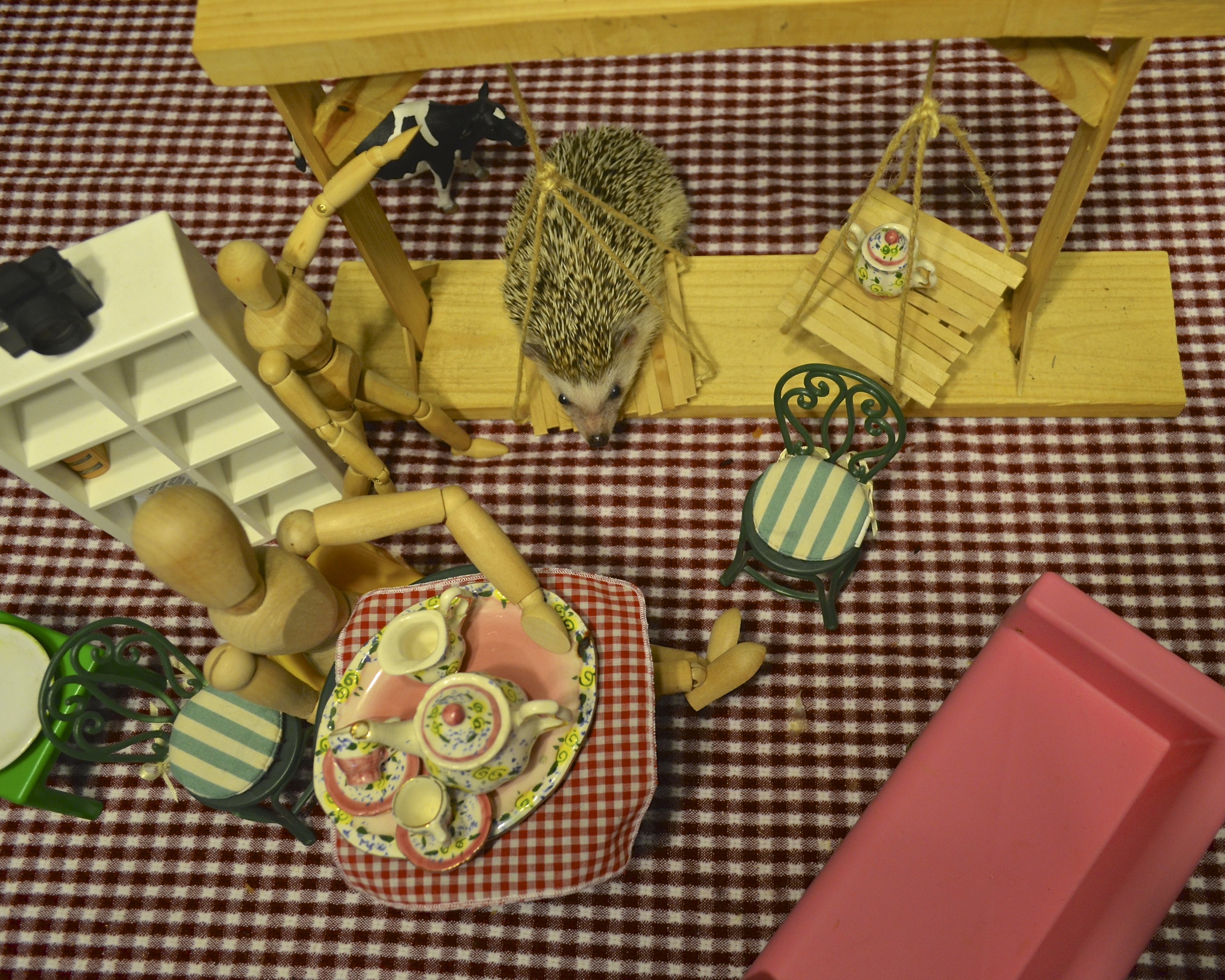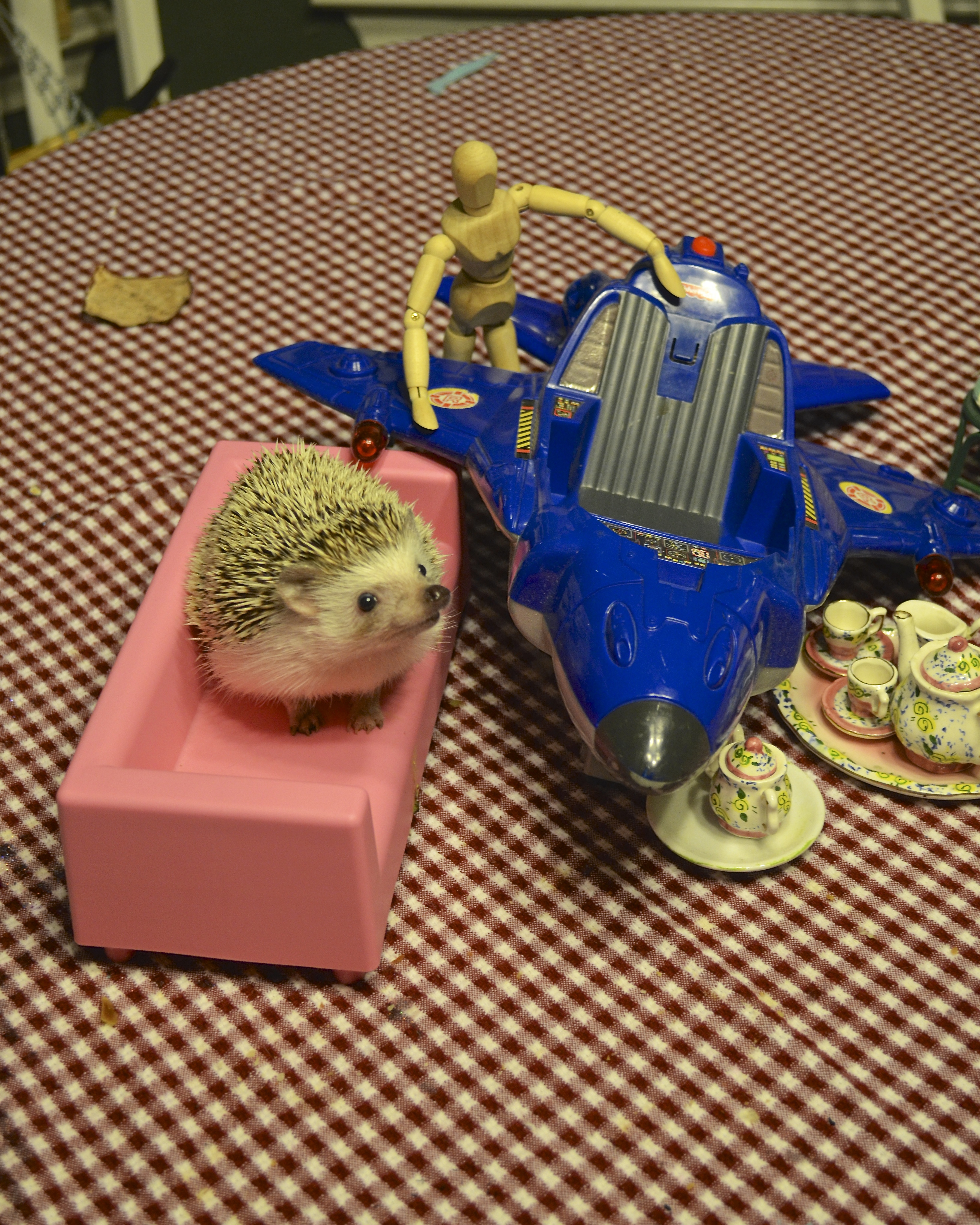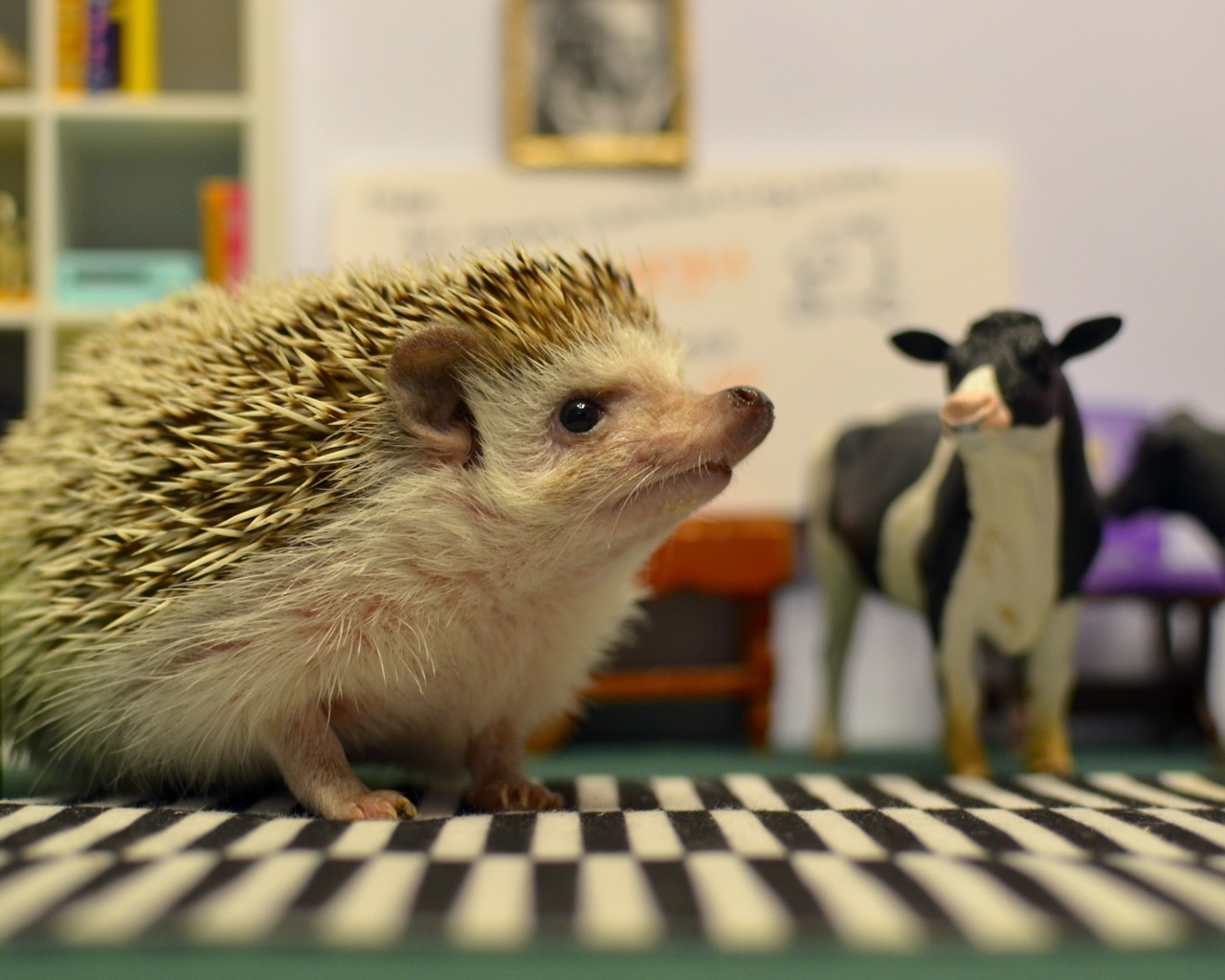 Princess Pricklepants, Boris the Canadian Existentialist Bear, Jane the Cow Accountant, Bessie the Generic Cow, and Christine (Cow Safety Officer) were sitting around the living room.  Her Highness was displeased.  The hat she trying on was really not working, but the boutique it had been purchased from had a No Pets Allowed policy, so she’d need to send the hand servants along to sort things out again.  Usually she accepted these things with the dignity and grace befitting a hedgehog of high station, but this time this indignity, this utter injustice of Pet Prejudice touched a tipping point.
