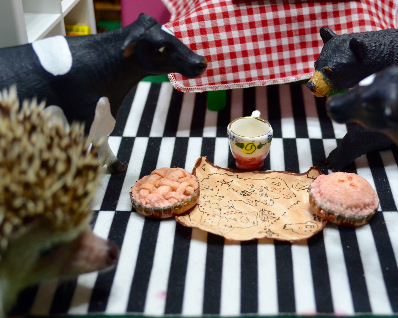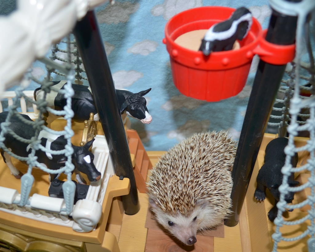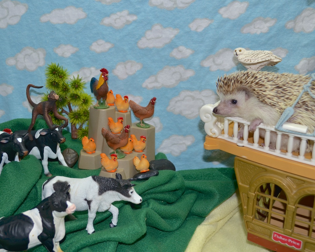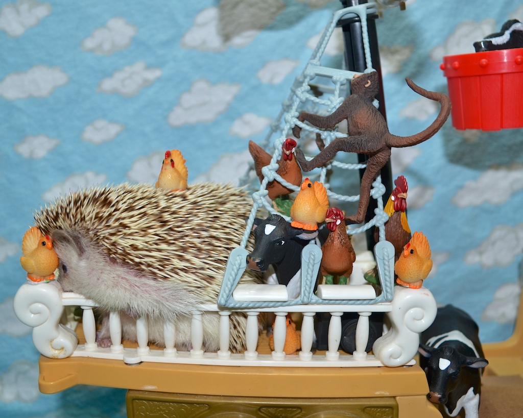 Princess Pricklepants, Boris the Canadian Existentialist Bear, Jane the Cow Accountant, Bessie the Generic Cow, and Christine (Cow Safety Officer) were sitting around the living room.  Her Highness was displeased.  The hat she trying on was really not working, but the boutique it had been purchased from had a No Pets Allowed policy, so she’d need to send the hand servants along to sort things out again.  Usually she accepted these things with the dignity and grace befitting a hedgehog of high station, but this time this indignity, this utter injustice of Pet Prejudice touched a tipping point.