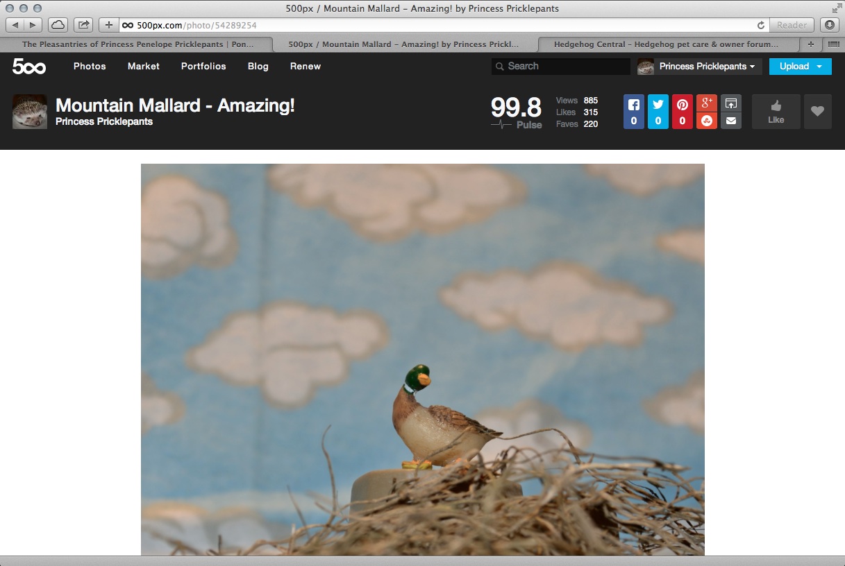She decided that taking photos of small farm animals on table-top sets had to be the start of a brilliant and lucrative photography career. Strangely, her work never became massively popular in a whirlwind of fame bringing in no cash, prizes, or wonderful adventures as a brilliant and respected photographic artist. She did get a photo shared on Cute Overload, her favorite blog, but somehow that didn’t bring everlasting fame, but more like twenty views. Perplexing.